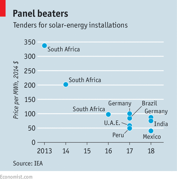 Solar power is reshaping energy production in the developing world Source: Follow the sun | The Economist Post navigation Europe faces €253bn nuclear waste bill | Environment | The Guardian Clouds gather over solar power after golden years of success | Environment | The Guardian